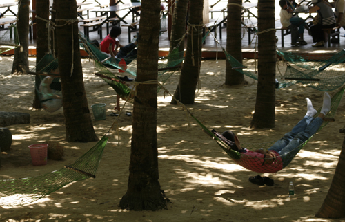 Karaoken suosio kummaksutti. Boundary Islandilla kiinalaiset vuokrasivat riippumattoja ja kuuntelivat rantabaarista isoista ämyreistä kuuluvaa (surkeaa!) karaoke-laulua.