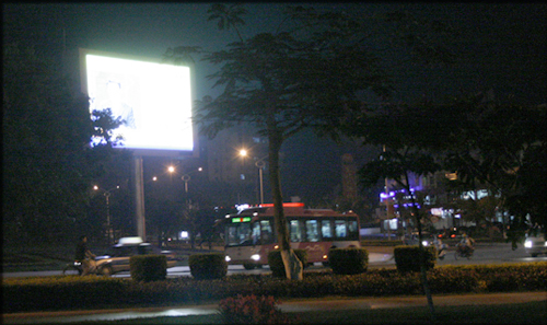 Liikenneympyröissä olevat isot screenit, joista seurattiin mm. maanjäristysalueen tuhoja. Ja samalla ajettiin liikenneympyrää.