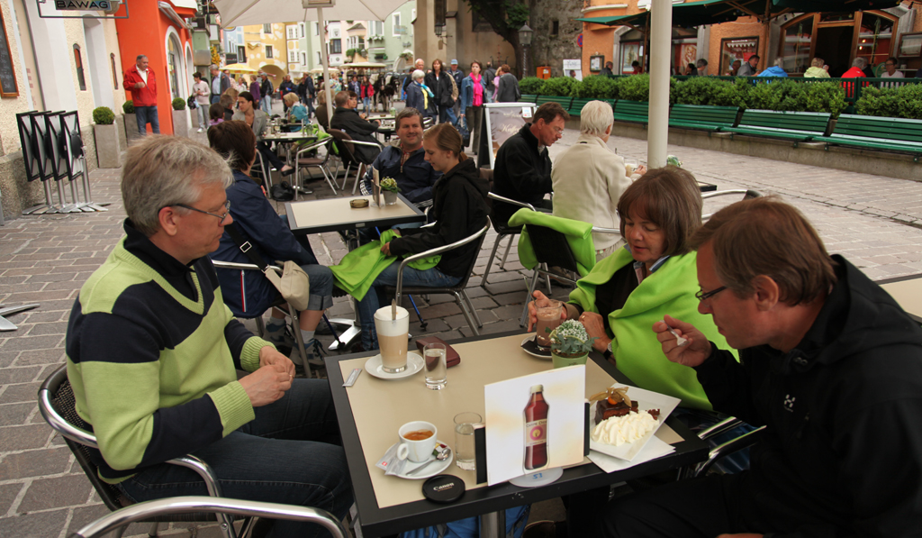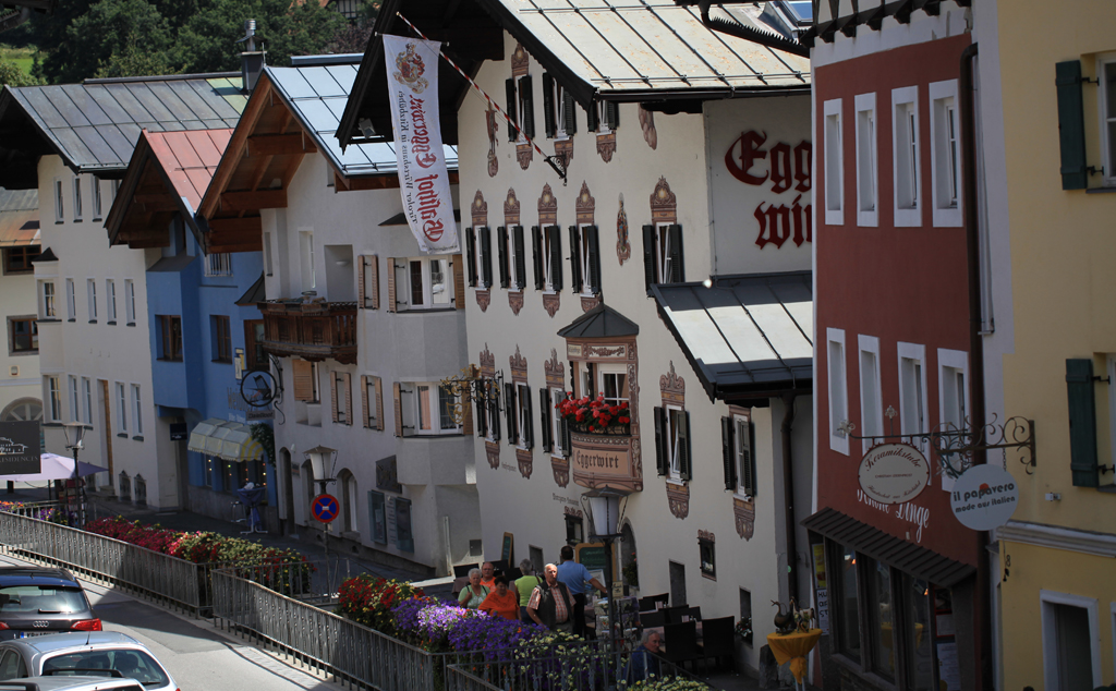 Stanglwirt sijaitsee Kitzbühelin naapurikylässä Kirscbergissä, jonne hurautimme taksilla. Noin parinkymmnene minuutin matka maksoi parikymppiä. Ja taksasi hoiti myös puhumisen. Puhui koko ajan. Englantia ja saksaa sekaisin. Haki meidät sitten syötyämme poiskin.