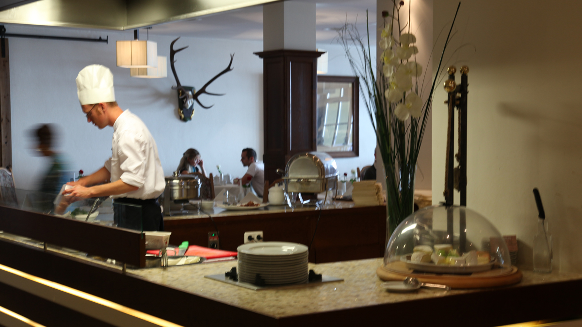 Hotelli Astoria, sen aamiaishuone, hotellihuone ja näköala Hahnenkamm´lle oli hyvästeltävä.
