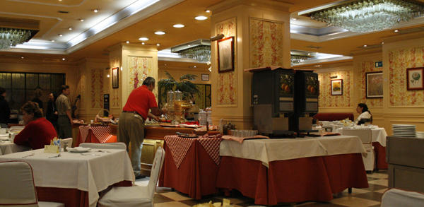 Aamiainen oli eteläeurooppalaiseksi ihan kelvollinen. Hotellin julkiset tilat olivat yleensäkin fiksummat kuin käytävät ja huoneet. |