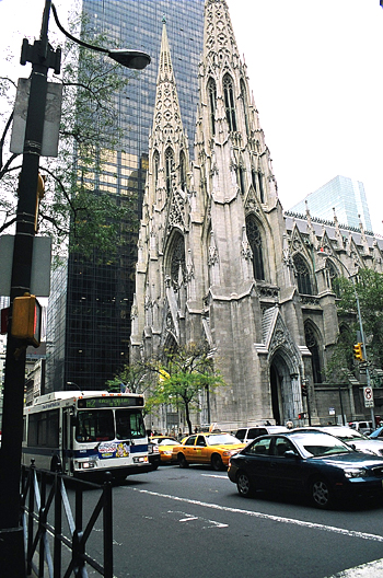 Lounaan jälkeen soitettiin murmelille; Oulussa(kin) oli kylmä. Matkaohjelman laatineen Saaran opastastuksen mukaisesti seuraavaksi piipahdettiin St. Patrick´s katedraalissa. Uusgoottilainen kirkko keskellä pilvenpiirtäjiä oli kummallisen amerikkalainen. Enpä muista missään Euroopan tuomiokirkossa olleen sellaista tunnelmaa kuin tässä kirkossa. Tästä puuttui historia, hartaus? Oli liian ”puhdas”, liian kiiltävä? Tomppa halusi kuitenkin kynttilän sytyttää, ja se tehtiin. Kontrasti siirryttäessä takaisin kadulle ei ollut niin suuri kuin olisi voinut ajatella, tai ehkä Amerikassa sen ei kuulukaan olla…