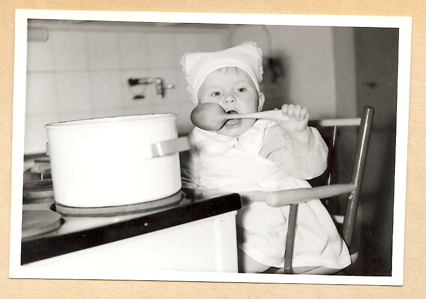 Lapsuuden albumista löytyi myös vastaus Koivun eiliseen kommenttiin, ”Reseptiaarteistojen takana taitaakin piillä ripaus “viherpiipertäjää”?. Piilee siellä jotain sellaistakin, ja olen pari vuotta elämästäni ollut ihan ”umpivegekin”. En todellakaan enää, mutta jos jotain liharuokaa vierastan niin sitten juuri broileria. Kana sen sijaan on hyvää ja — luulen ainakin — että vähän luonnonmukaisemmin tuotettua. Parhaillaan mietinkin, miten kehittelisin yhtä vanhaa kanareseptiä, jolla haluaisin osallistua (minulle) uuteen bloggaajien haastejuttuun.