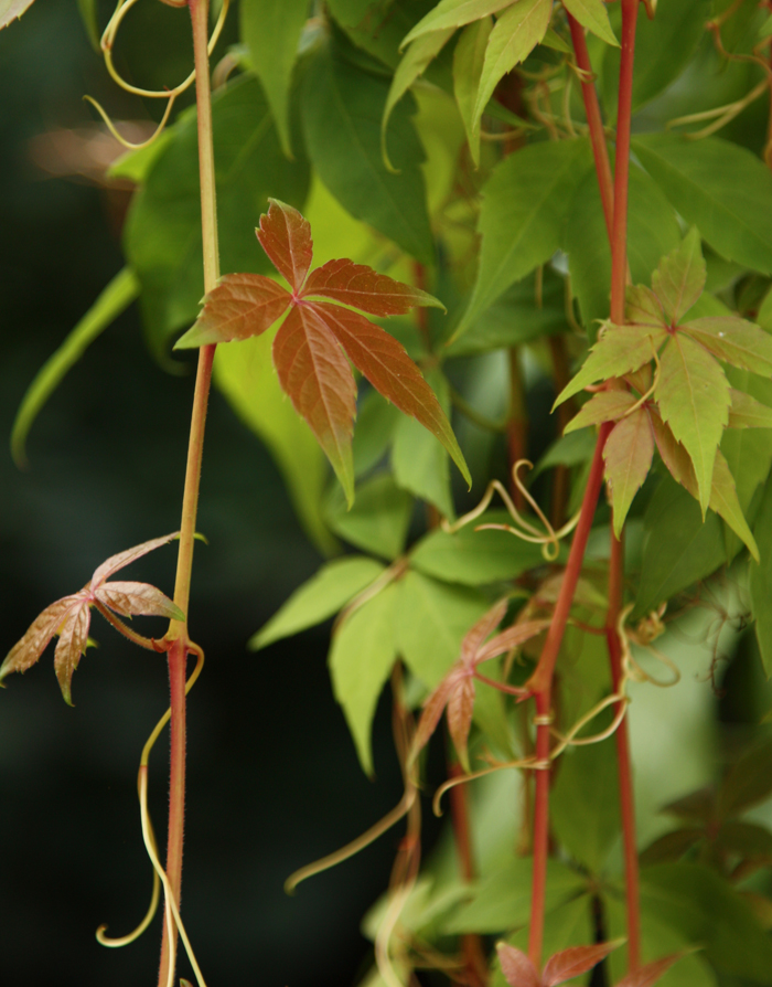 Aamulla tuntui tarpeelliselle kietoa paksu kaulaliina lämmittämään kurkkua. Flunssa kun vain jatkuu – joskin eilisen lääkärissäkäynnin jälkeen saadut dropit ja mixtuurat toki helpottavat oloa – ja oli ensimmäinen kylmän tuntuinen aamu. Villiviini länsiseinustalla on jo kainosti ryhtymässä ruskaksi. (klikkaamalla kuva suurenee)