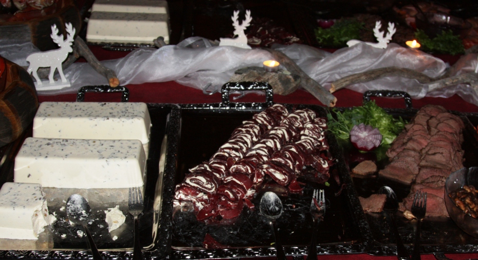 Illallinen olikin hintansa väärti, hyvinkin. Rotisseur-kilvet saanut Huippu tarjosi lappilaisia herkkuja, joista tattihyytelö jäi ehkä parhaana mieleen. Kyllä avotulella liekitetyt poronselyksetkin toki maistuivat. Ja kaarnikkakakku. Se on jotenkin niin hienon väristäkin. Digestive- vai murokakkupohja? Chablis ja Montecillon gran reserva kruunasivat illallisemme (kiitos vain K & M). Kello ei ollut yhtätoistakaan kun olimme buffet-pöytien kaikki herkut ehtineet maistella ja nauttia.