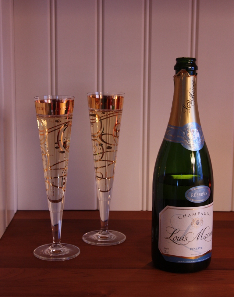 Kaiken kuvaamisen ja ulkoilun jälkeen ruoka-aika: mietittiin, jotta lähdettäisiinkö kävellen kylille. Petronellaan, ja kun siellä on Tunturiblueskin! Just. Eihän meistä semmoiseen. Blinejä? (Resepti suoraan LappItaliasta.) Se helpompi, nopeampi sopi mökkioloihin oikein hyvin. Ja samppanjaa? Meillähän on täällä juhla! Nuoriso osti pehtoorille 50-vuotislahjaksi hienot lasit, niistä oli iloa tänään. Hyvä päivä tänään, kaikkinensa!