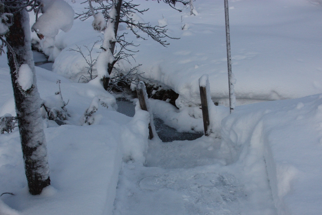 Miltä täällä muuten näyttää? Puroon ei oikeastaan houkutellut pulahtaa… Viheliäinen tuuli on tänään ollut esteenä monelle urheilusuoritukselle.