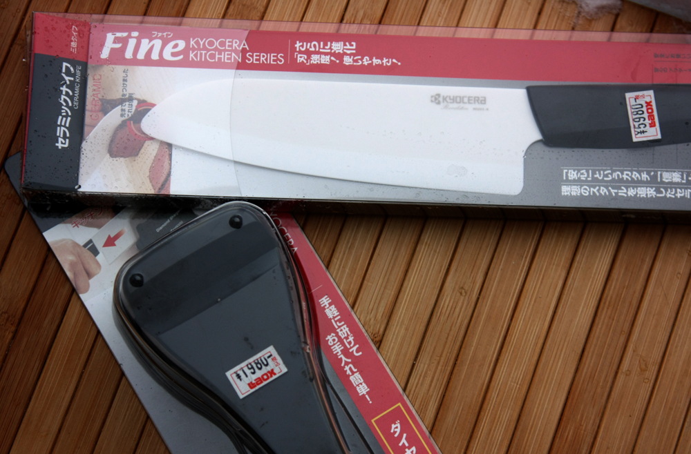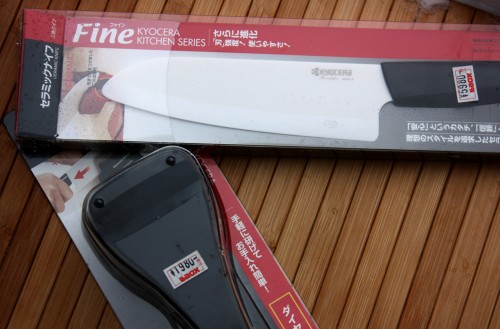 Ja sitten itsellä teki tänään mieli sushia. Ja teki mieli vihdoinkin kokeilla työpaikan professorin Japanin kongressimatkaltaan jo ennen joulua tuomaa hiilikuituveistä. Pistin hänelle mukaan kauppalapun: ”Tuo veitsi, maksan sitten”. Ja professorihan toi, ja hoksasi tuoda myös terottimen, hyvä juttu.