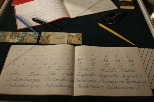 nuo vanhat kirjaimet ovat vaan niin paljon kauniimmat! itse aloitin koulunkäynnin 1990 ja jouduin opettelemaan nuo uudet, mutta sitten kotona opettelin ne vanhat ja kiukulla käytin niitä koko kouluajan – ja vähän vieläkin.