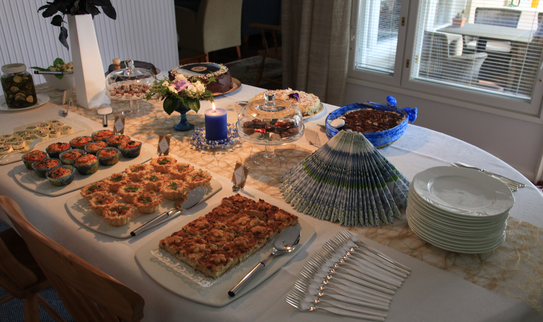Onnenkyyneleitä (minulla, tuskin muilla ;)). Helpotusta, aurinkoa ja ukkoskuuroja, kaksikin. Kakkuja ja naurua. Ystäviä, naapureita ja sukulaisia. Haikeuttakin. Samppanjaa, herkkuja ja halauksia. Ruusuja ja puheita.