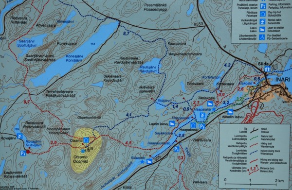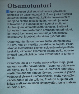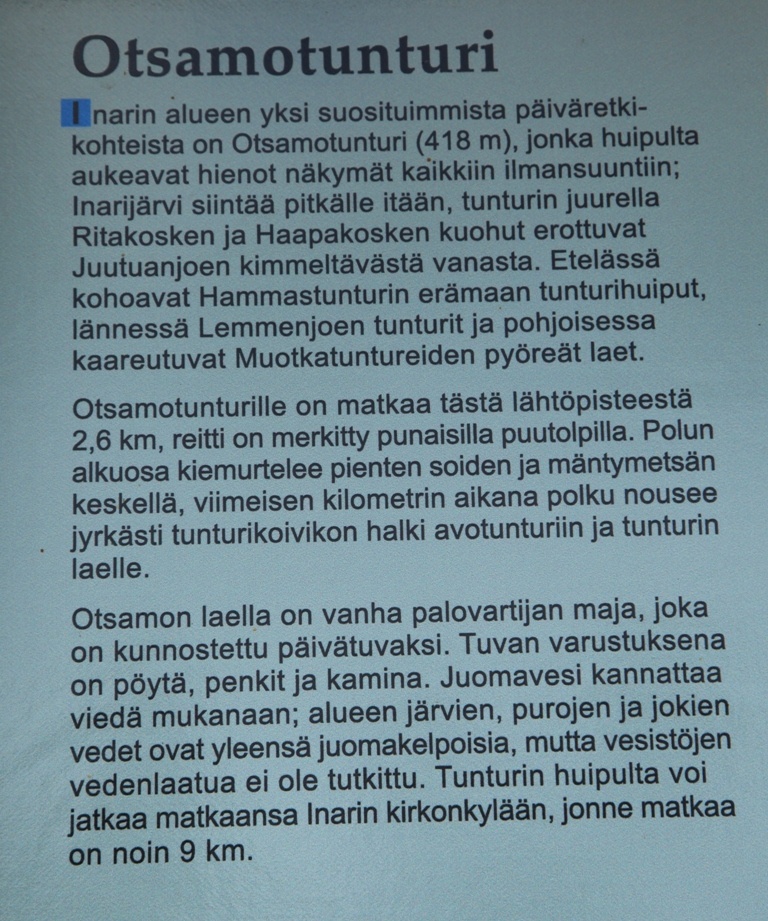 Otsamotunturille pääsee joko suoraan Siidan edestä lähtevää patikkareittiä pitkin tai sitten voi ajaa Inarin keskustan ohi,