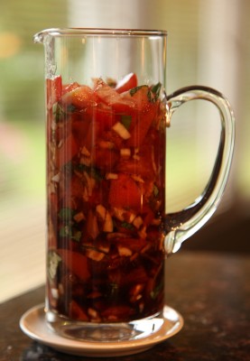 Tytär tuli duunista nimpparisapuskalle ja kuulemaan matkakuulumiset, mikä oli hyvä syy kokkailla kotitekoista pestoa (basilikani on melkein pensas!! 🙂 ja tomaattisalsaa (resepti keittokirjassani sivulla 21 ”Leilan salsa”. NYT on juuri oikea aika tehdä sitä).
