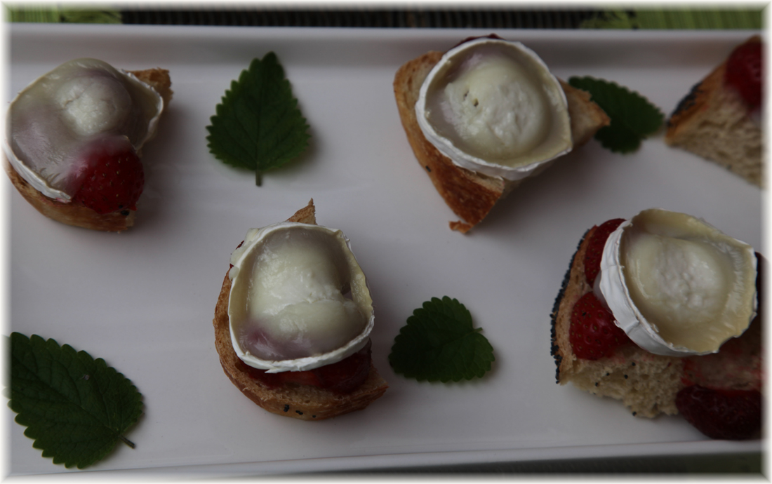 leikkaa päivän vanhasta patongista tai maalaisleivästä palasia, sipaise vähän voita, laita leivälle mansikka tai pari, päälle vuohenjuustoviipale ja sitten valuta vielä vähän hunajaa… Pistä kuumaan uuniin niin että juusto alkaa sulaa. Ihana pieni ”terveisiä keittiöstä” herkku tai useammasta saa jo alkupalan. Tai välipalan – tai … Kokeileppas vaikka kuinka on hyvää, edellyttäen tietysti että pidät vuohenjuustonmausta.