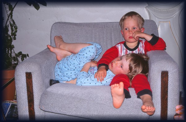 Esitelmän kuvitusta varten selailin valtaisaa kuva-arkistoani ja kuinkas ollakkaan eksyin myös perhekuvien puolelle. Ja tämä on nyt jaettava. Tytär on kuumeessa ja kuvan oton jälkeisenä päivänä myös veljensä.  Eikä tämä kuva (klikkaamalla suurenee) sitten taas yhtään lievittänyt ikävääni. Mutta …