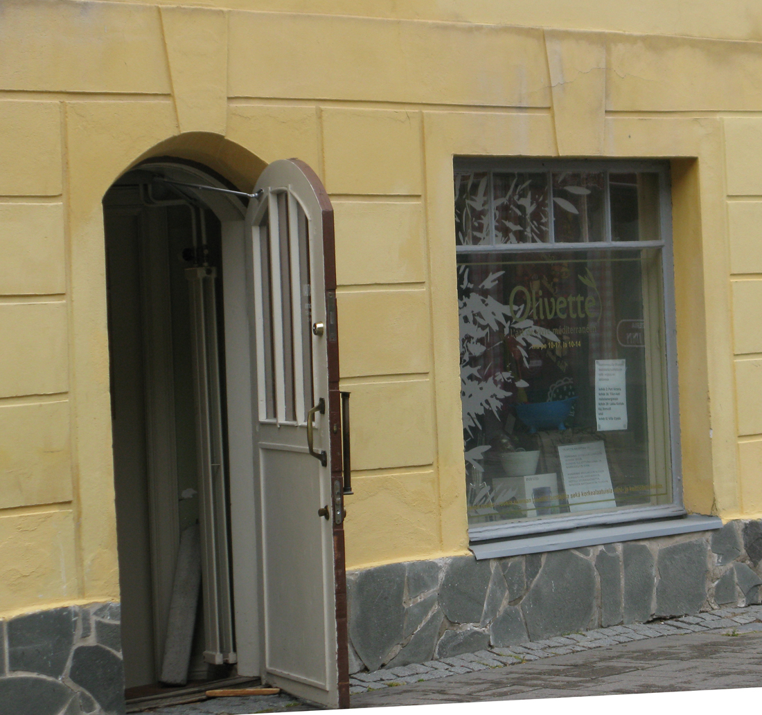 Ajettuamme läpi sateisen Pohjois-Pohjanmaan olimme aamupäivällä Kokkolassa. Ja kävimme vanhassa kaupungissa olevassa viehättävässä Olivette-kaupassa. Suosittelen. Johan sieltä espressoa, pastaa, viinietikkaa mukaan lähti. Eikä siellä käyty ihan vain herkkujen tähden (vrt. Keittiöelämää Tampereella ja …. Gastreija Oulussa?). Kokkolan jälkeen sää kirkastui, ajelimme kovin hiljaista rantatietä.