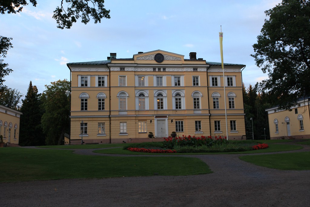 Vielä 10 vuotta sitten vanhainkotina ollut kartanon päärakennus, joka on Engelin käsialaa (mikä kyllä näkyy: uusklassismin kouluesimerkki?), on valmistunut 1836 ja nämä molemmat sivurakennukset, flyygelit, ovat saman ikäisiä. Säätiön omistuksessa oleva kartano on restauroitu EU-rahalla, ja toimintaa ja näyttelyä tuntuu olevan jos jonkinlaista. Mitä sitten maksaa yöpyminen täällä? Ihan saman verran kuin Holiday Innissä Hesan keskustassa.