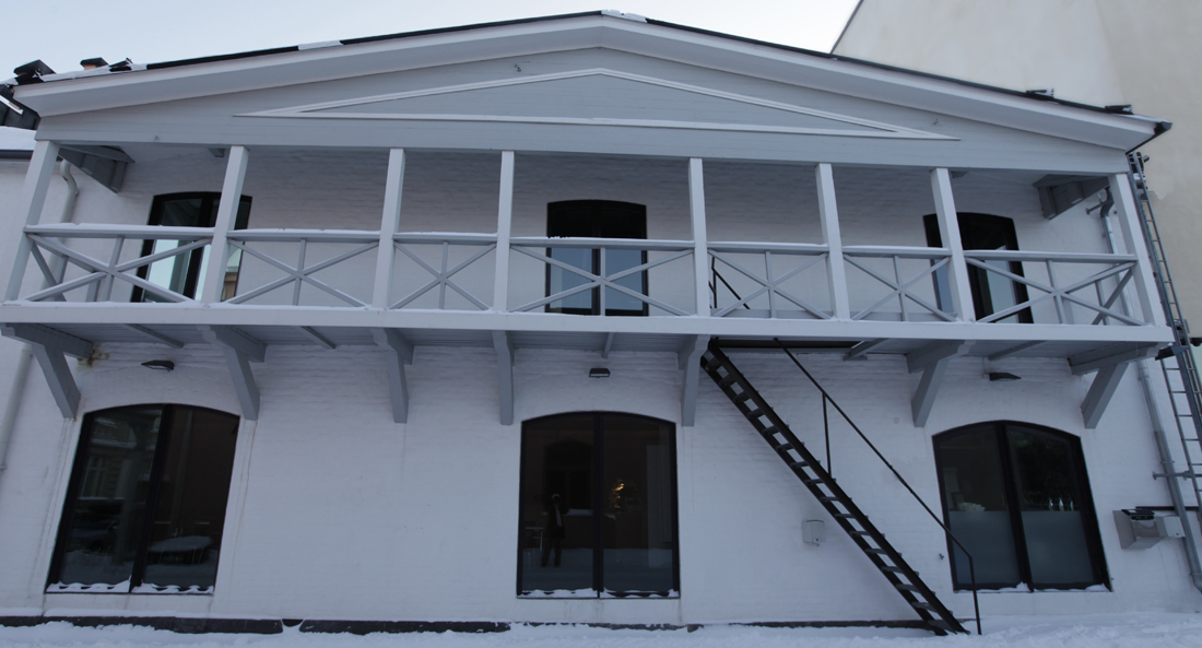 Valkoinen rakennus on sisäpiha talosta joka on Tori- ja Aleksanterikadun välisellä pätkällä Hallituskadulla. Vastapäätä Valven ovea. Se näkyy kyllä kadulle kun osaa katsoa.