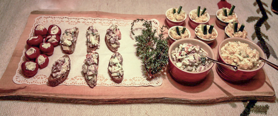 Lappilaisia tapaksia. Ja niitä varten uusi design-tekeleeni oli ihan toimiva. Että kahdestaanko noin paljon tarvittiin ruokaa? Ehei.