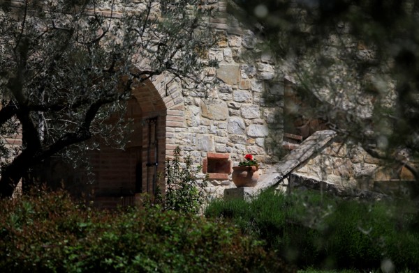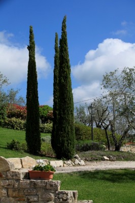 Luulimme käyneemme jo toissapäivänä Collazzonen kylässä, mutta se olikin Collepiedi ja tänään siis sitten huiputimme ”oikean” Collazonen. Sekin on keskiaikainen, linnanmuureilla varustettu kukkulakaupunki. Pieni sellainen. Mutta San Lorenzon luostari ja kirkko siellä on. Siis taas me törmäämme San Lorenzoon! Meidän pyhimys! 😉 (ks. täältä, miten niin meidän ja katso, kuinka paljon San Lorenzo on meidän elämäämme vaikuttanut. … )