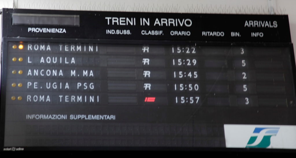 Norweigianin lennolla Oulu – Helsinki – Rooma tullut tytär ja kaverinsa (Klippaniksi puhutellaan, ;)) olivat ajelleet Fiumicinon lentokentältä aeroporto-expressillä Terminille (Rooman päärautatieasema), ja sieltä junalla Terniin. Vähän reilu (14:16 – 15:22) tunti oli mennyt junamatkaan ja pikkuisen reilu tunti meillä meni edestakaiseen hakureissun Collazzone – Terni.