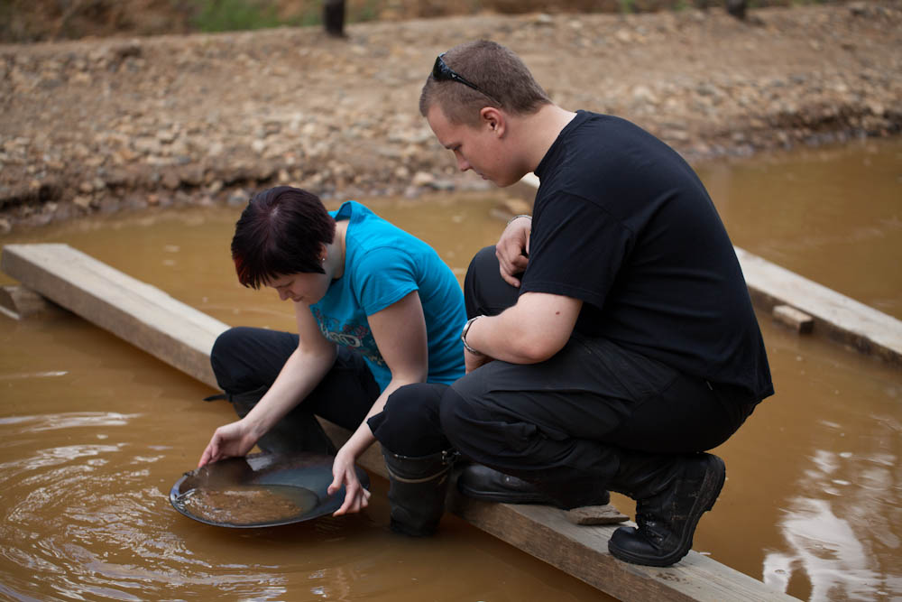 Kultamuseon virvokkeiden jälkeen nuoret kokeilivat vaskaamistakin. Pienen korundin poika taisi onnistua löytämäänkin. Pitää vielä käydä näyttämässä jossain… Ei liene kuitenkaan kyse kovin merkittävästä varallisuuden lisääntymisestä moisen löydön jälkeen. Mutta onpahan homma kokeiltu.