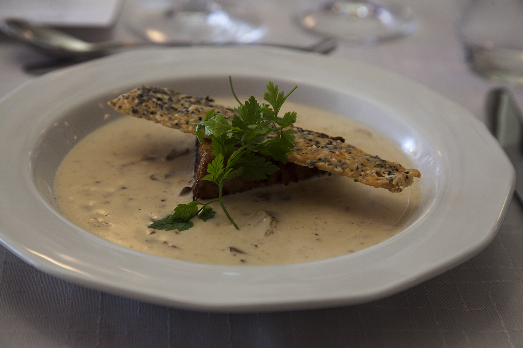 Tämän jälkeen seurasivat kuohkea jokirapukeitto, matalalämmössä kypsennettyä vasikkaa (minusta ruoka oli kyllä alatoopia, mutta minähän olenkin vain harrastelija… ),