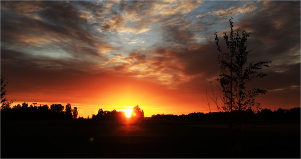 Tuo samettisen illan auringonlaskukuva on otettu elokuussa viime vuonna Vuojoen kartanon pihalla.