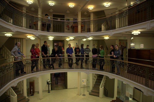 Helsingin rautatieasemalla klo 9 aamulla tuntui mukavan lämpimälle. 19 opiskelijan ja kollegan (naapurioppiaineesta) kanssa teimme normaalit rutiinit: tavarat matkatavarasäilytykseen ja R:ltä kahden vuorokauden matkailijaliput ja sitten kävellen kohti Yliopiston kirjastoa (ei käytykään Porthaniassa aamukahvilla vaan kirjastolla – radikaaleja muutoksia ohjelmassa :)). Ylliopiston kirjastoahan nykyään tituleerataan Kansalliskirjastoksi. Viime ekskulla (2009, siis ”minun” viime ekskursiolla,) siellä oppaana Rahikainen, jonka voittanutta ei ole. Humaanit humanistit ovat selvästikin katoava luonnonvara. Vahinko.