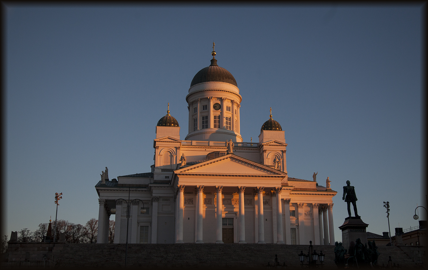Sadun kommentoinnin jälkeen on vielä liitettävä mukaan kuva Tuomiokirkosta. Aleksanteri II:en patsaan silhuetti sopii mukavasti kuvaan, minun mielestäni ainakin. 😉