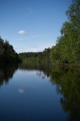 Paluulle lähdimme seitsemältä, iltaveneily ei enää pilvisessä ja jo viilentyneessä kelissä ollutkaan ihan niin hienoa kuin menomatka. Kun pääsimme Njurgulahteen kävelimme suoraan Ahkuntupaan ja ostimme täytetyt Reissumiehet ja pullot BonAquaa, jotka paluumatkalla mökille kyllä maistuivat. Oli nimittäin sattunut erinäisten väärinkäsitysten vuoksi niin että meillä ei ollut minkäänlaisia eväitä mukana Lemmenjoella. Ei muuta kuin yksi pullo vettä. Koko päivänä emme syöneet mitään (paitsi ne tomaatit ;)) ja patikkakilometrejä tuli parisenkymmentä.