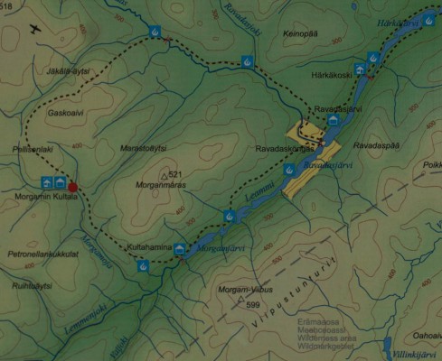 Joten olipa sitten keksittävä uusi, joku toinen patikka… Lähdetään Morgamin autiotuvalle ja siinähän ne on sitten lähellä Petronellan kukkulatkin. Olisi ollut koneellisen kullankaivuunkenttäkin reilun kilometrin päässä, mutta se hommahan me on jo nähty, joten sai olla. Matkalla mukaan lyöttäytyi yksinäinen samalla laivalla tullut ilmajokinen mies, joka sitten kulki kanssamme koko päivän.