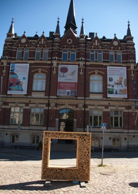 Kauppatorilta sitten kohti Paviljonkia ja Design-museoa, joka on aina ollut Helsingissä lempparimuseoni. Sen nimi oli ennen Taideteollinen museo. Korkeavuorenkadulla olevan museon viereen oli nyt tehty Design-pääkaupunkivuoden merkeissä puinen Paviljonki, jossa oli kahvila, lukunurkkaus, keskusteluaukio, piknikpaikka ja ties mitä.