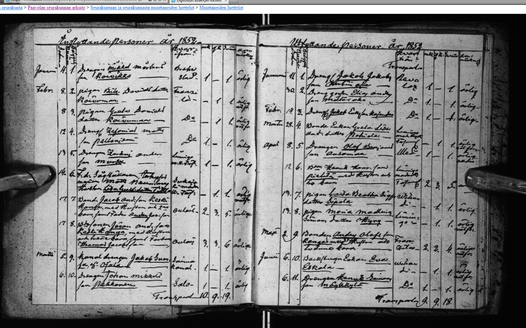 Muuttoluettelon sivu ja muuttokirja suurenevat klikkaamalla.
