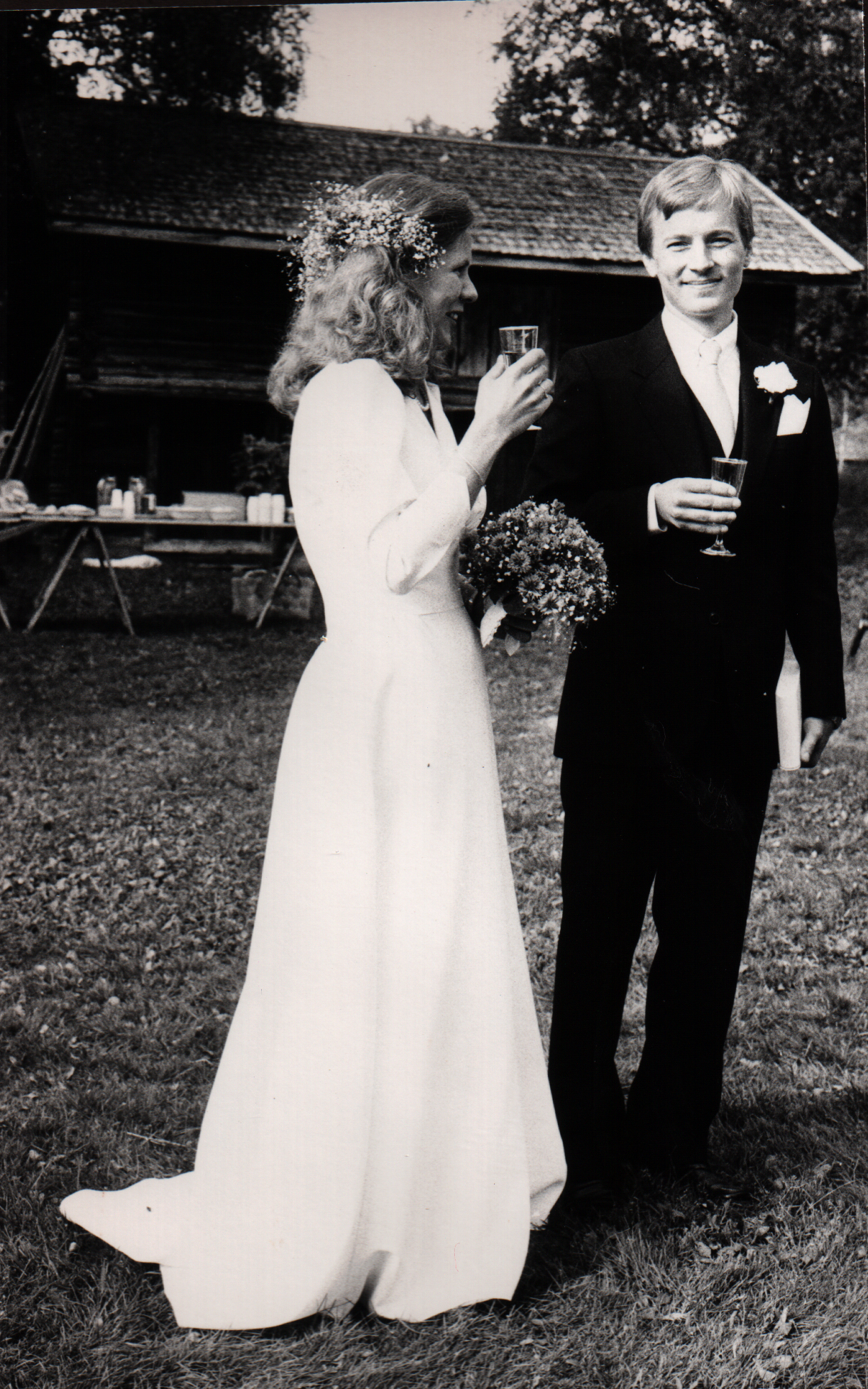 30 vuotta sitten ei ollut ihan niin lämmin kuin tänään, mutta melkein. Ja paistoi, aina siihen asti kun hääjuhla kesti (muistaakseni klo 17 lähdimme Turkansaaresta). Illalla jo satoi, mutta senhän sanotaankin tuovan onnea. Sadekuurojen häissä.