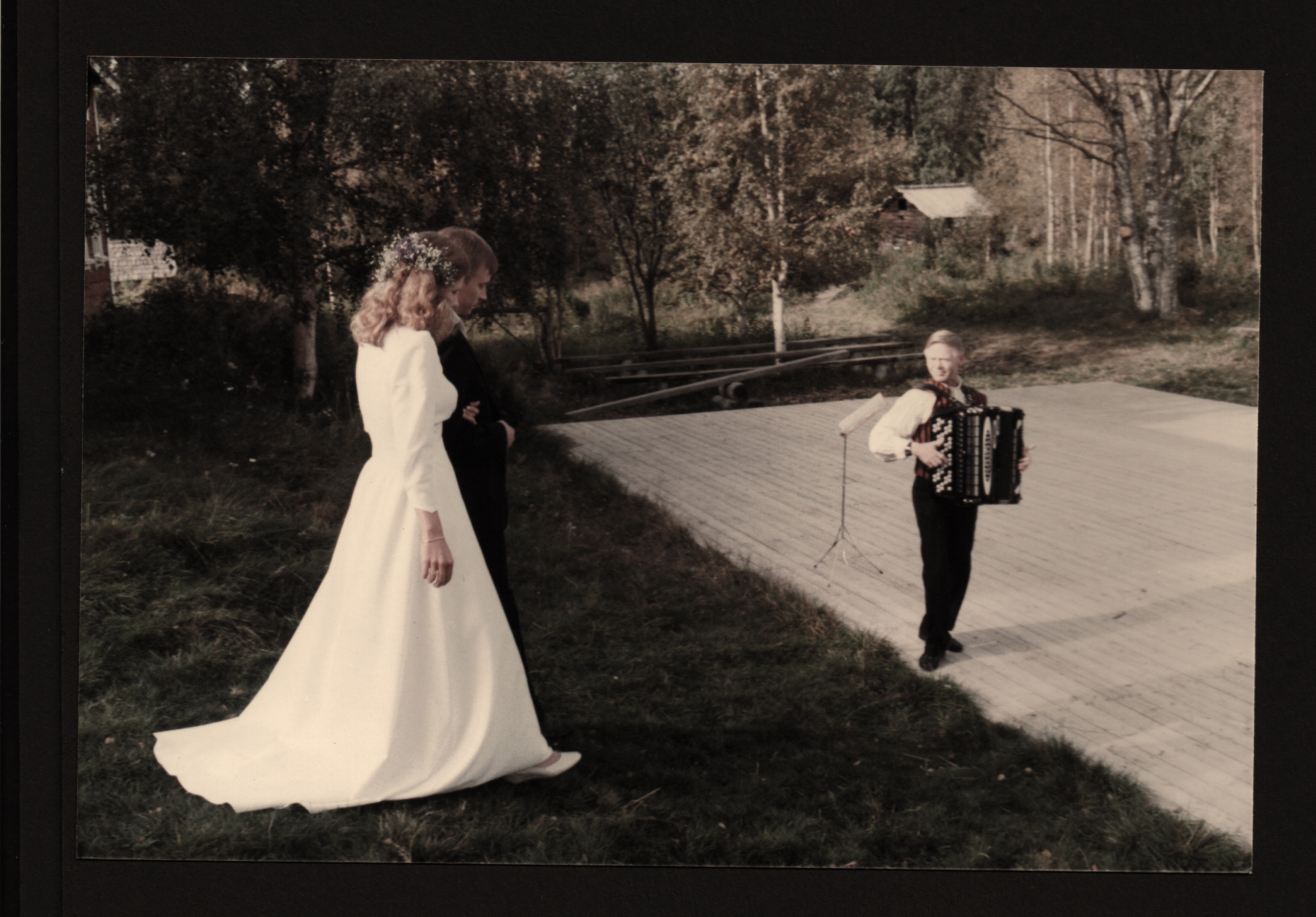 5. Pasi, luonnollisesti meillä oli oltava häävalssi elokuvasta ”Täällä Pohjantähden alla” – varsinkin kun vihkiminen ja hääjuhlakin oli museossa (Turkansaari). Hanuristi on Elias Kivilahti, joka 80-luvulla esiintyi Oulussa hyvinkin paljon. Ja soitti hitaan valssin vielä tavattoman hitaasti. Mutta kyllä me selvisimme …;)