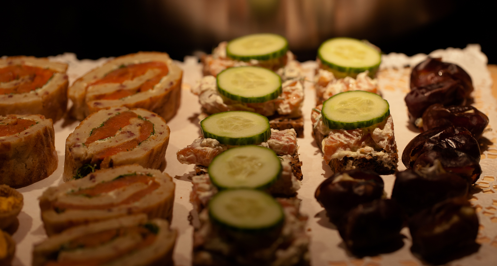 sekä tämänkertaisia tapaksia (oikealla epämääräisen näköiset möykyt taateleita, joiden kiven tilalle nokare Castello-sinihomejuustoa…)