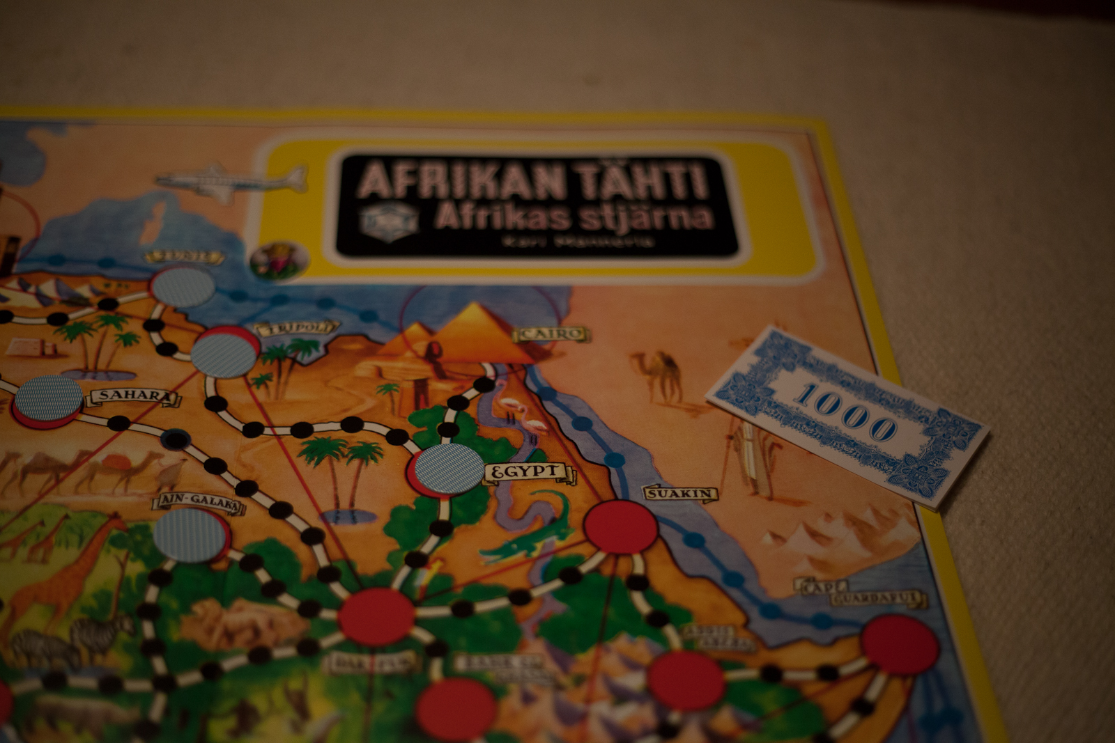 4. Sinistä satujen sumua, kuin lasikuvun sisällä. Vävyni Vessu on kova lautapelien pelaaja, hän tekee jopa radiohjelmia uusista peleistä, ja sitä seurataan ympäri maailmaa. En muista tietoja, sorry. Hän osti ensimmäisellä Suomen markallaan Afrikan tähden 🙂 Sattumoisin meillä on pöydällä juuri nyt vanha Trivial Pursuit juhlapäivän ratoksi. Kun vain saisin kaikki päydän äärelle yhtä aikaa 😀