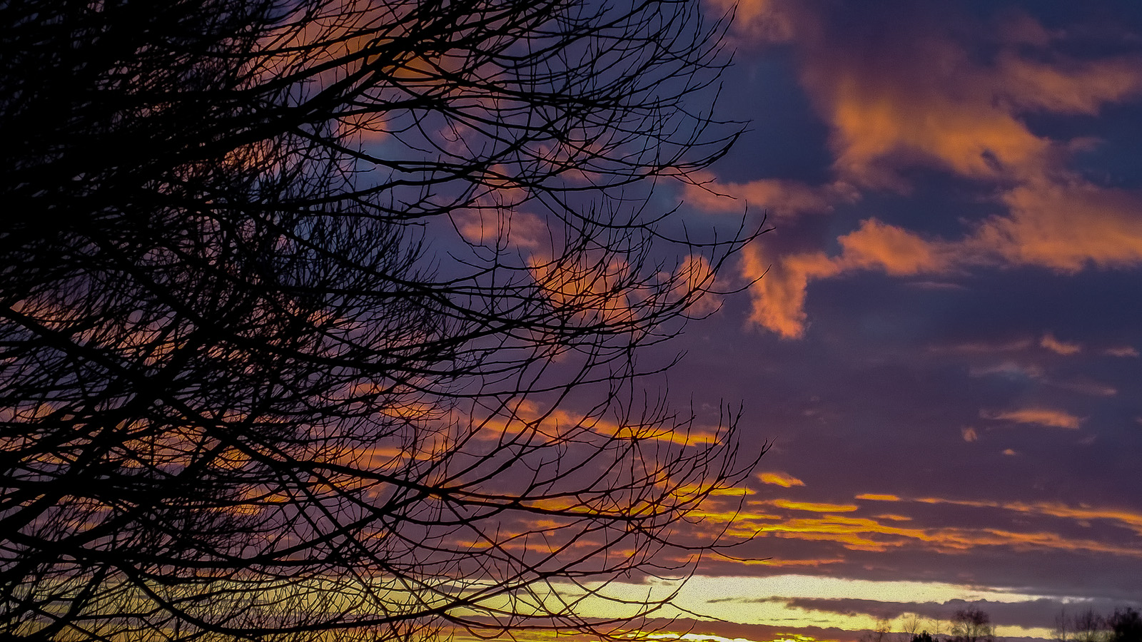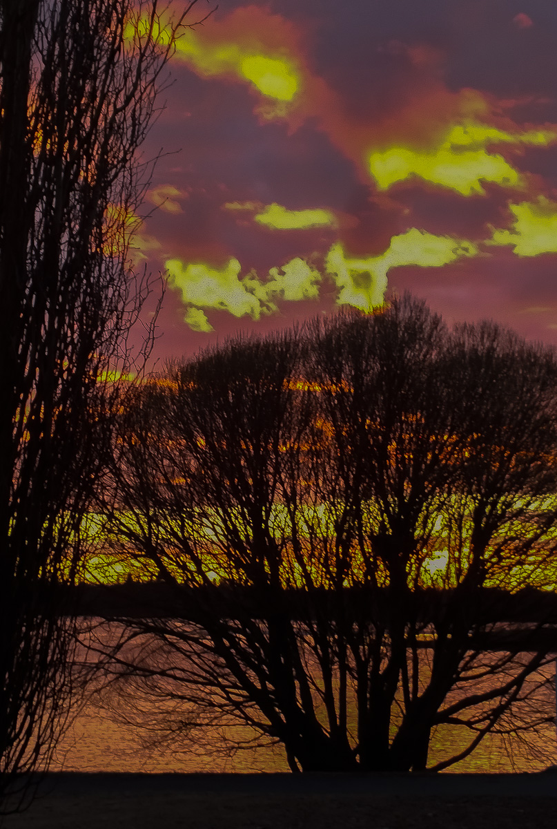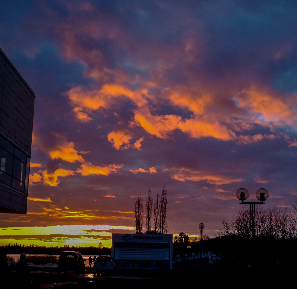 Ja teatterilta lähtiessä taivas!! Oliko minulla järkkäri mukana? No hyvänen aika: ei sentään teatterissa. Mutta kännykkä oli. Ja siinä kamera. Tässä tulos…