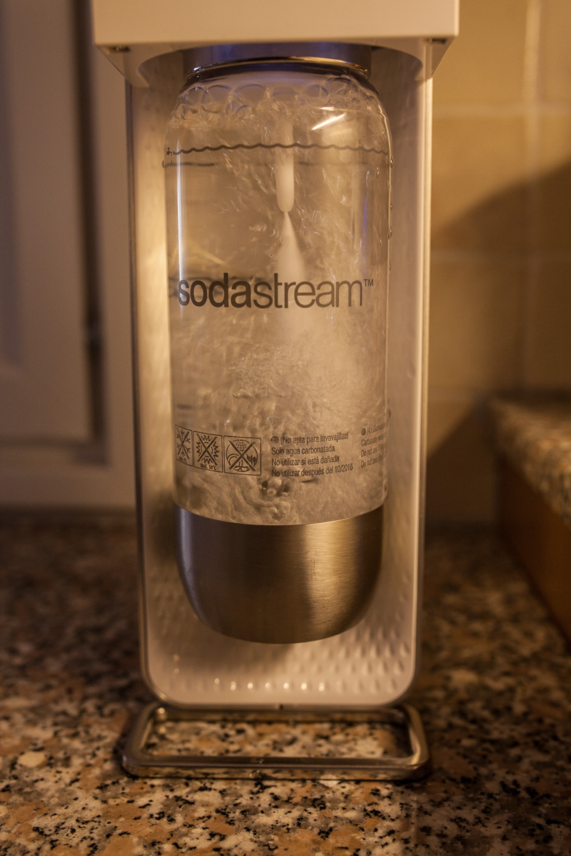 Meillä on ollut kuukauden päivät Sodastream. Enää ei ole tarvinnut roudata kaupasta Novellea tms. Sitä kului nelisen isoa pullollista viikossa, ja lisäksi pari isoa Pepsi Maxia, jota join vain minä jonkinlaisena ”välipalajuomana” [lue: ihan turhana limpparin lipittämisenä]. Se vain on nyt ihan itsekseen jäänyt pois. Sodastreamilla olen näytepakkauksen verran koettanut tehdä ”Coke Zeroa”, – ei hyvä. Siis ei tarvita enää ollenkaan mitään colajuomaa. Pepsi Maxia vain silloin kun nuoripari tulee syömään.
