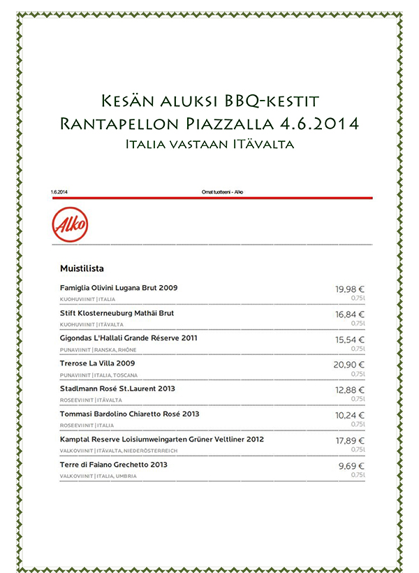 Umbrian Grechettoa jäi, St. Laurent roseeta jäi, mutta La Villa rutistettiin loppuun. Perfetto.