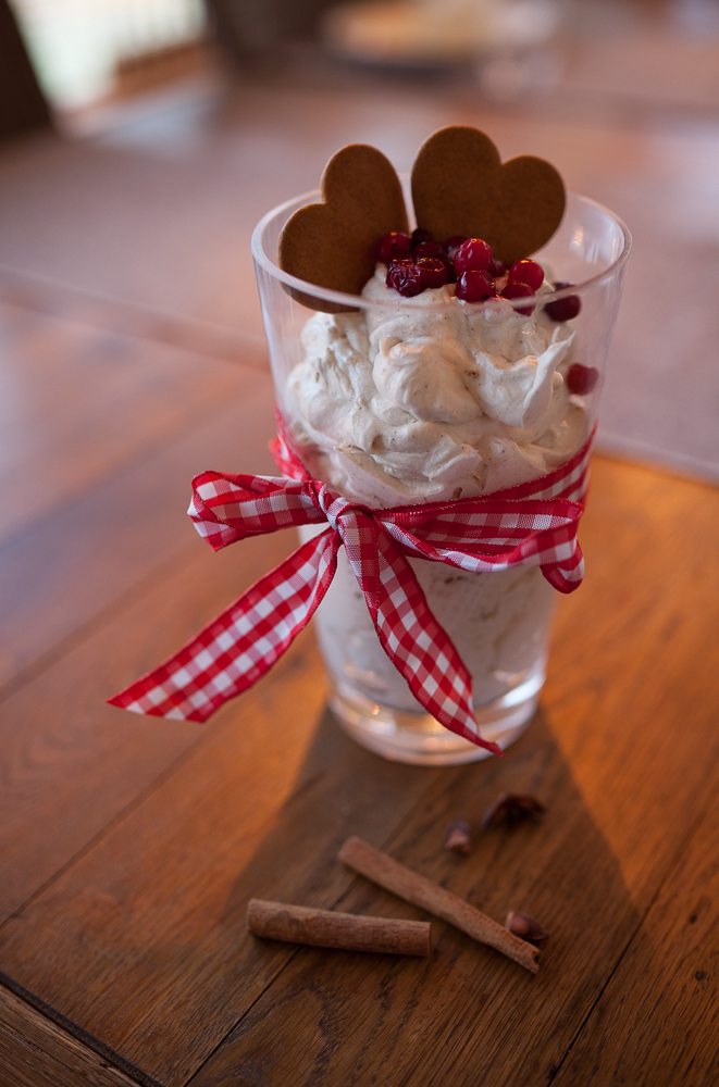 Vispaa edelliset vaahdoksi ja sekoita joukkoon 5 – 10 murusteltua piparkakkua ja karpaloita.