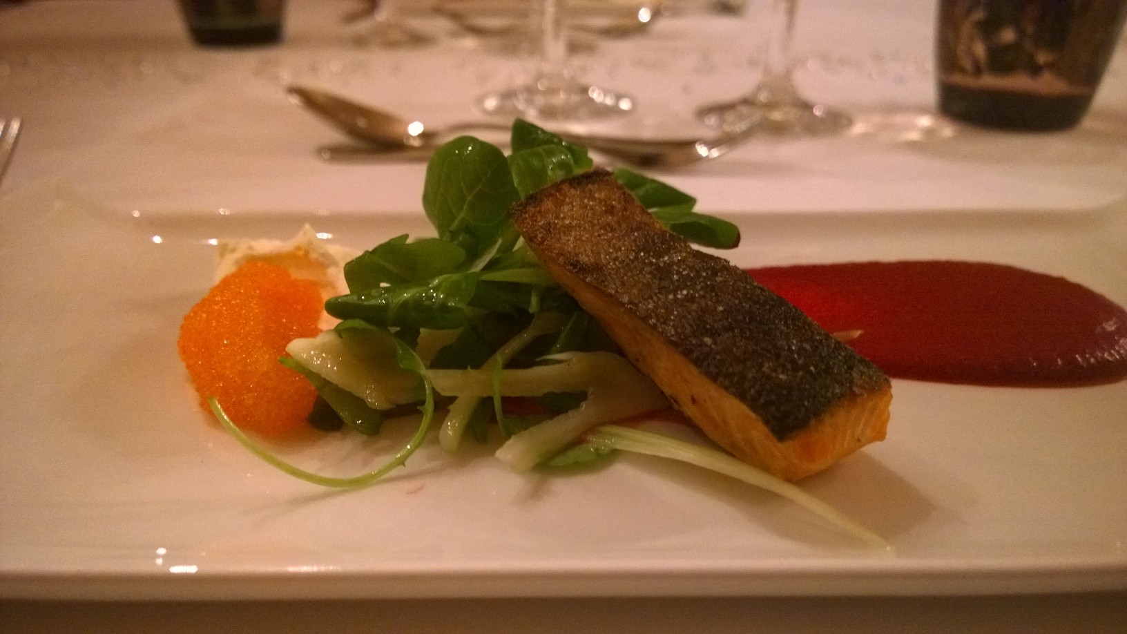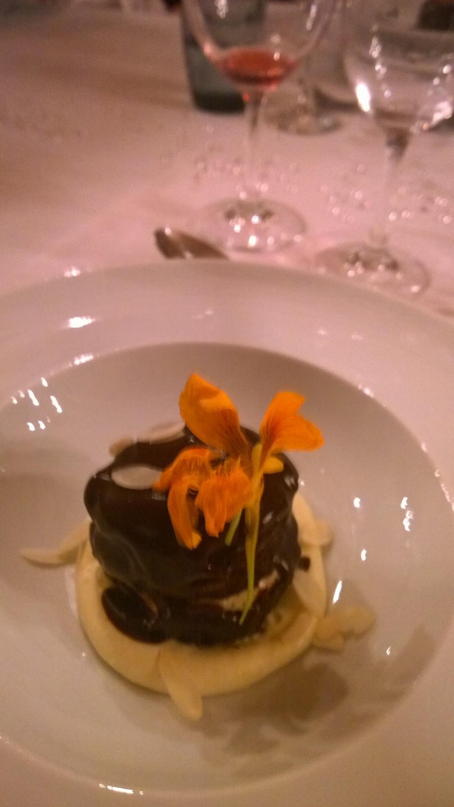 Liki liikuttavan yksimielisiä olimme siitä, että kaikki – paitsi pääruoan punaviini – olivat hienoja, makunystyröitä hiveleviä, oivallisesti valmistettuja, raaka-aineet huolella valittuja ja kauniisti esille pantuja, maut harmonisessa tasapainossa. Pääruoan kastiketta olisi voinut syödä lusikalla, sellaisenaan. Appelsiini teki siitä raikasta ja erilaista. Erinomaista.