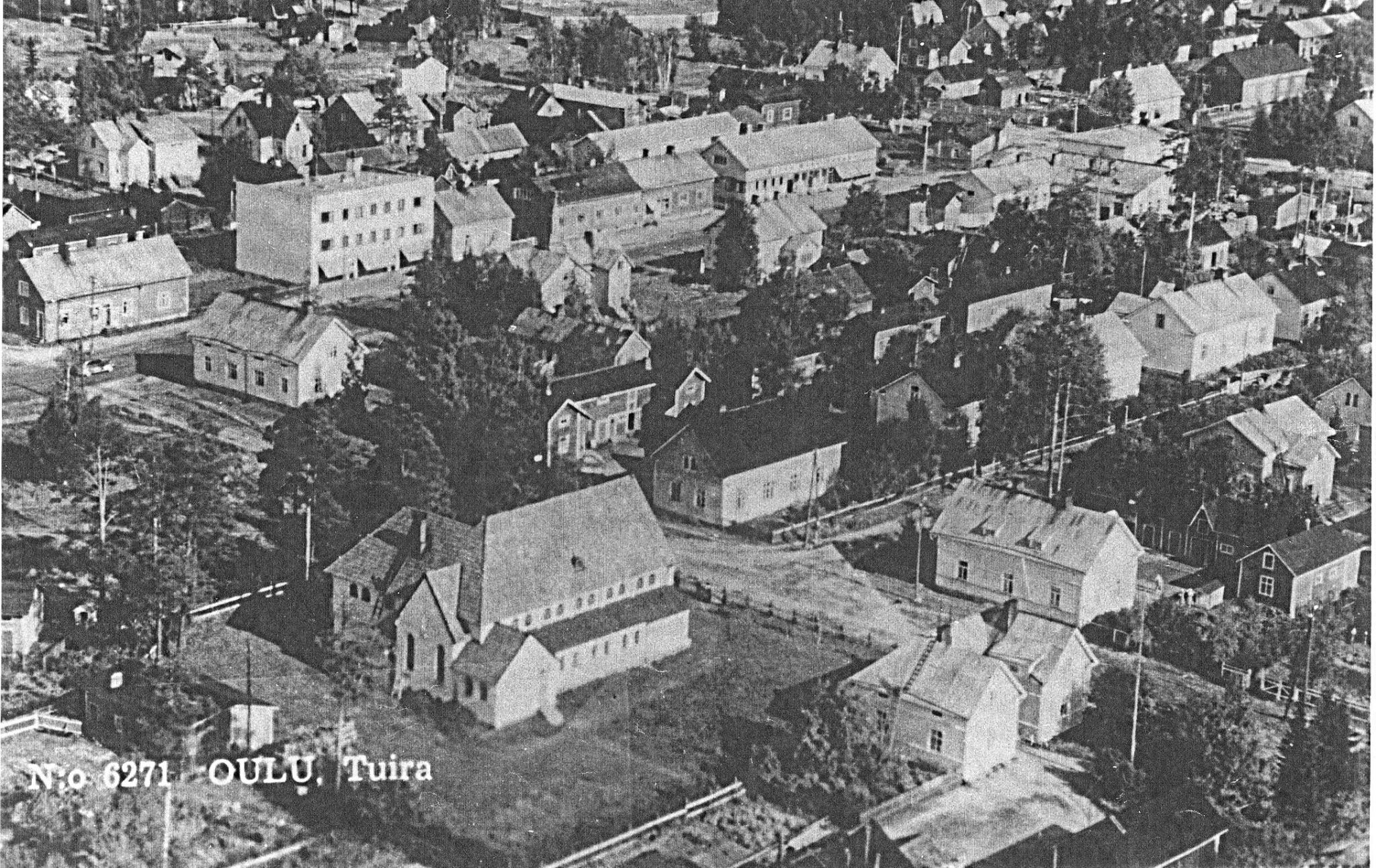 Tähän alle vielä kuva eilisen surmapaikan tienoilta; kuva otettu jokunen vuosikymmen sitten, ehkä 1950-luvun alusta. Kortin/kuvan vohkaisin fb-ryhmästä nimeltä ”Puu-Tuira”. Toinen fb-ryhmä, jossa on paljon hyviä kuvia Oulun menneiltä ja nykyisiltäkin vuosikymmeniltä, on ”Oulu tutuksi”. Paikallishistoriaa sielläkin…