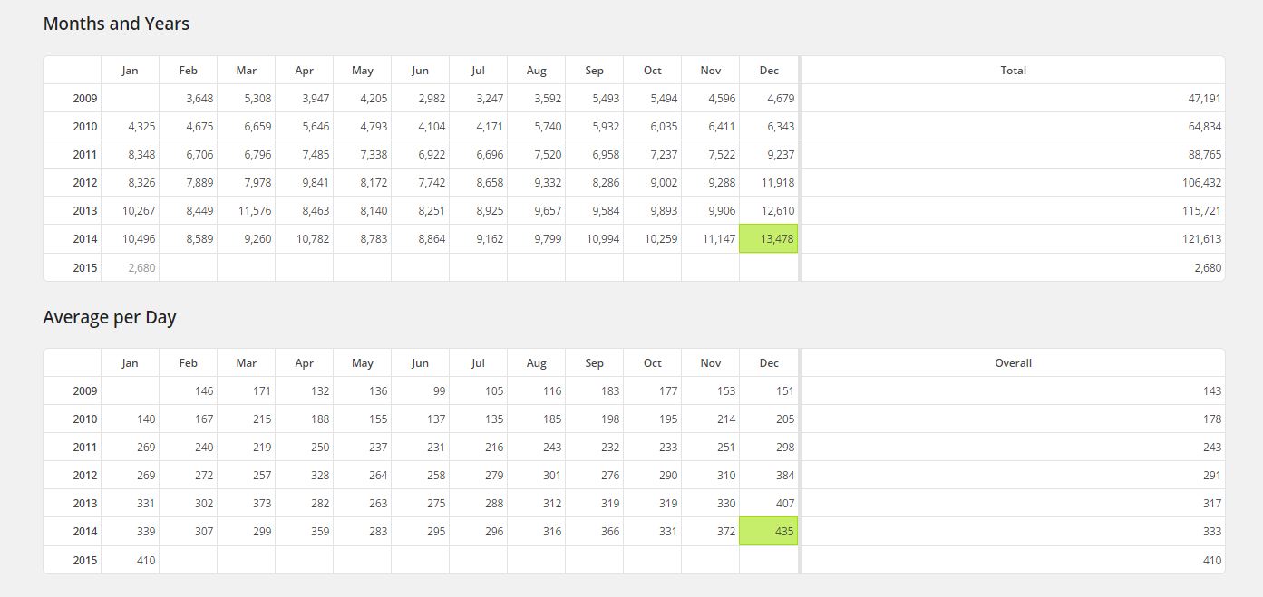 Kävijämäärät ovat edelleen vähän nousussa, mutta nouseva kehitys on hidastunut. Kuitenkin heittämällä yli puolimiljoonaa kävijää täällä on ollut.  Klikkaa ihmeessä isommaksi, ei noista tihruista mitään muuten näe… Siis päivittäisiä käyntejä 350 – 400 ja koko vuodessa noin 120 000. Kiitos kaikille! Jos taulukossa olisi vain muutamia käyntejä, en tätä ylläpitäisi.