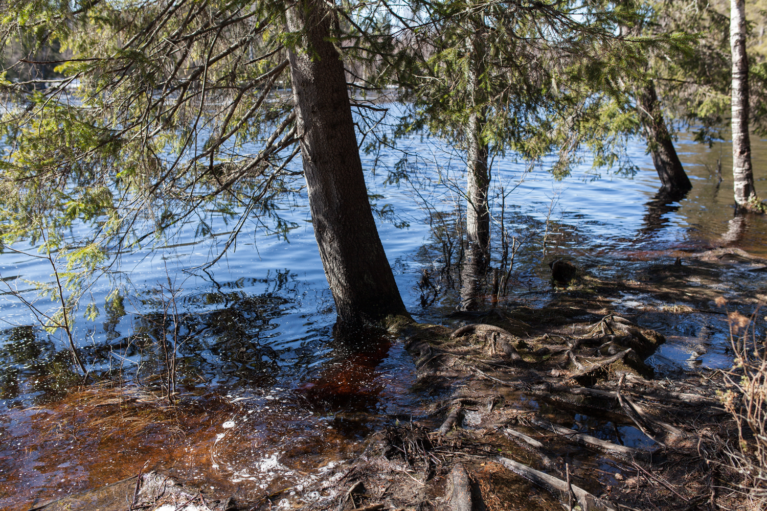 Videoklippi on juuri sieltä. Joessa vesi korkealla, ja aurinko taivaalla.