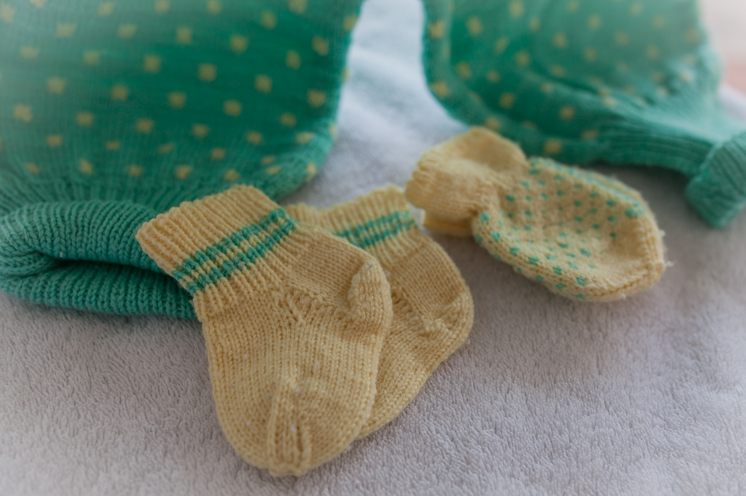 Nuttulangat ostin jo ennen joulua. 😉 Kuvien villapukua en ole nyt neulonut, vaan Esikoista odottaessa. Tyär oli syksyn vauva, ja kovin pienenä pysyi kauan (koliikki), joten hän tuota piti paljon enemmän kuin veljensä, joka on syntynyt maaliskuussa. Kevätvauva oli syksyllä jo sen verran pulska poika, ettei tuo enää kunnolla mahtunut. On siis vielä ihan hyvä uudelle Pikkuiselle.