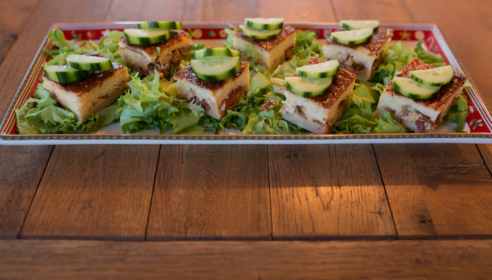 Sitten tänään … Paitsi että nuoripari (ja Aapeli tietysti) tulivat syömäään, saatiin sisareni ruokapöydän ääreen, mikä oli minulle hyvä syy tehdä vähän enemmän, vähän parempaa kuin tavallisena sunnuntaina. Alkuun eilisen possunfileen jämät (alla) ja Västerbottenin piirakan yksi uusi versio (joka on syntisen hyvää!)