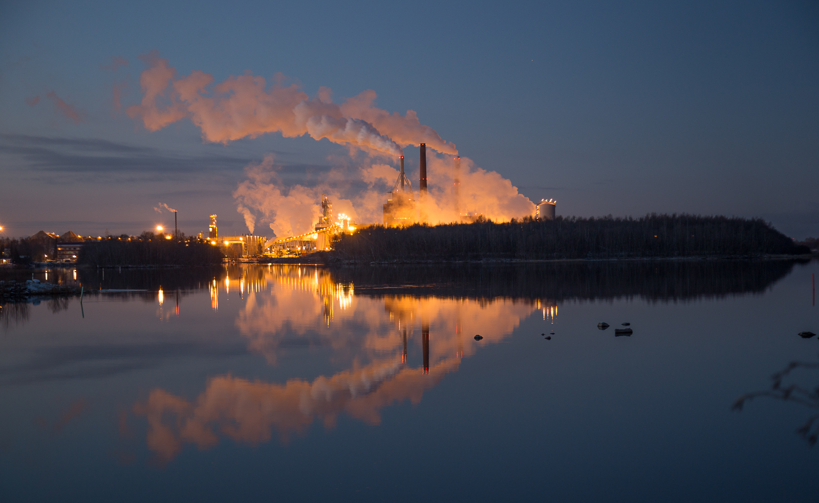 Katselin kotimatkalla, että juuri tuolla Arizona- Chemicalsin suunnalla olisi ollut hieno tummansinen pilvitaivas, mutta eihän sitä voinut hyvästä vauhdista pysähtyä kuvailemaan, vaikka kamera jalustoineen olikin matkassa.