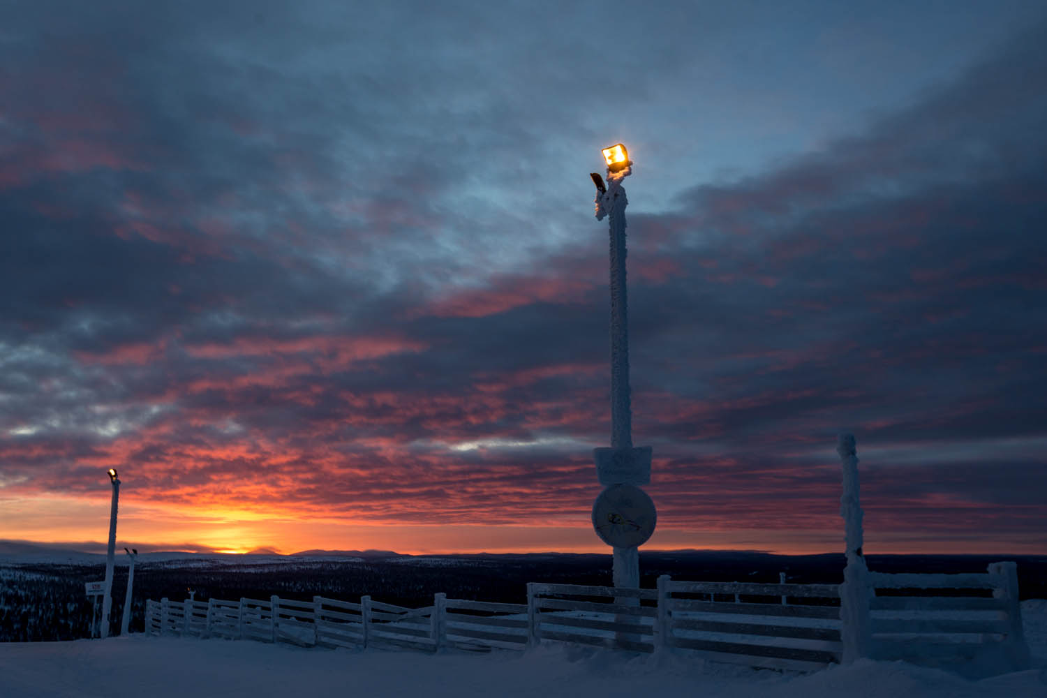 Kaunispäällä oli jo aika kylmä, ja sitten … Kaunispään huipun Huippu-ravintolassa oli muutama sata ranskalaista, joita viisi bussia tulivat juuri silloin kymmeneltä hakemaan: ei siinä mitään: turismi ja bussiliikenne ovat ok, mutta pikkusen häiritsivät minun revontulikuvaamistani nuo tulevat ja menevät dösät. Toisaalta, – jo ne reposet olivat heikkenemässäkin.