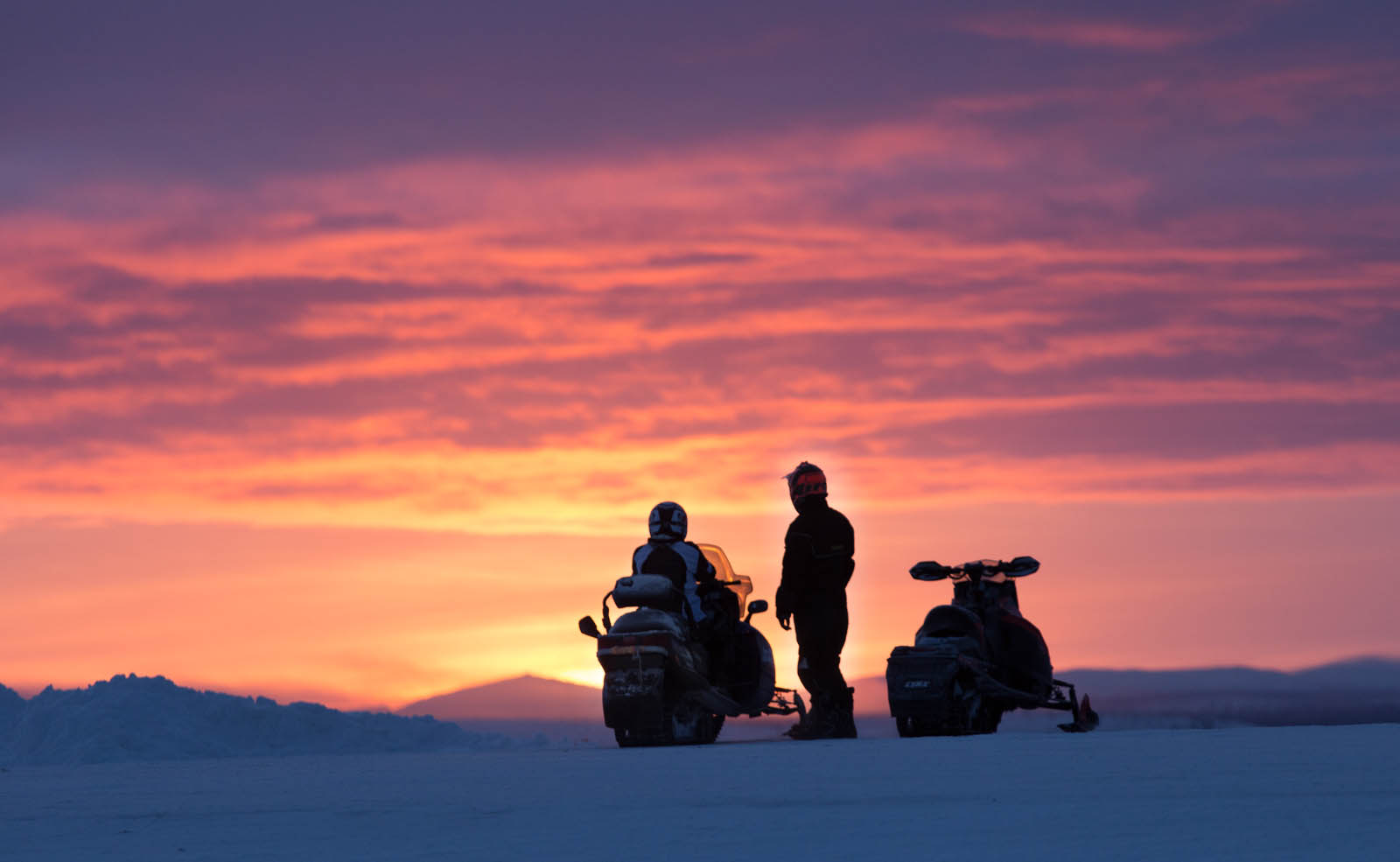 – Minähän uskoin, vedin villasilkkialusvaatteita, jumpperia, toppaa ja untuvaa ylle, kannoin kameralaukun ja jalustan autoon ja huristelin taas pohjoiseen. Eihän siellä niin kylmä ollutkaan. Mutta taivas oli täynnä purppuraa, botticellin pastilleja, tulen lieskoja, sinisen harmaita sävyjä. Ihan huikeaa. Pari tuntia ja pari sataa otosta melko sujuvasti, melko nopeasti.